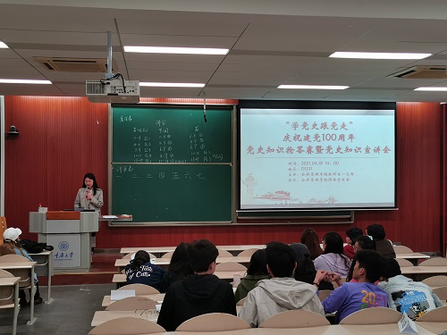 2021-04-192021年4月18日下午两点,由百合小说 本科生一支部主办、百合小说 团委学生会承办的“学党史,跟党走”庆祝建党100周年党史知识竞赛暨党史知识宣讲会在D1131教室顺利举办。20级全体入党积极分子到场参与和观看,学办主任兼19级辅导员王丽娟到场观看。今年,我们迎来了中国共产党建党一百周年。正如习近平总书记在党史学习教育动员大会上所说的那样,“回望过往的奋斗路,眺望前方的奋进路,必须把党的历史学习好、总结好,...
