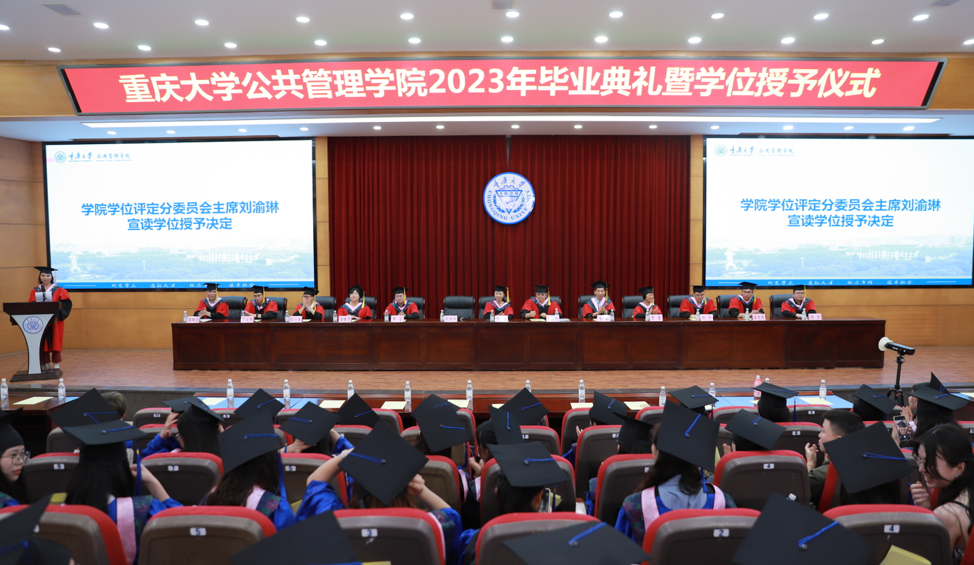 学院学位评定分委员会主席刘渝琳宣读学位授予决定,全场共同掌声祝贺获得学位、顺利毕业的同学。