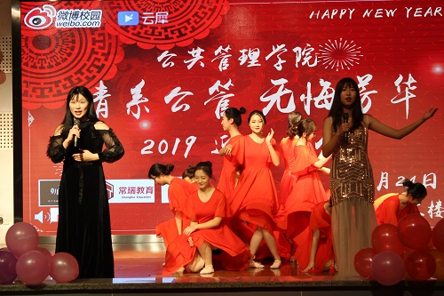 晚会伊始,在主持人介绍完到场的来宾之后,同学们以一个极具活力的开场歌舞表演正式宣告了晚会的开始。此后,刘炳胜院长向大家做了亲切的新年致辞。刘院长表示,在过去的一年中,公管人通过自己不懈的努力,创造了一个又一个的辉煌,取得了无数的鲜花和荣誉。而在接下来的2019年中,公管人必将再接再厉,以更饱满的精神和更昂扬的斗志,把学院建设得更加卓越。在致辞的最后,刘院长引用古诗“潮平两岸阔,风正一帆悬”向大家寄予了新年的问候与期盼。他说:“我们公管人会扬起风帆,聚力前行。愿全体公管师生在2019不忘初心,砥砺前行,再谱华章。”
