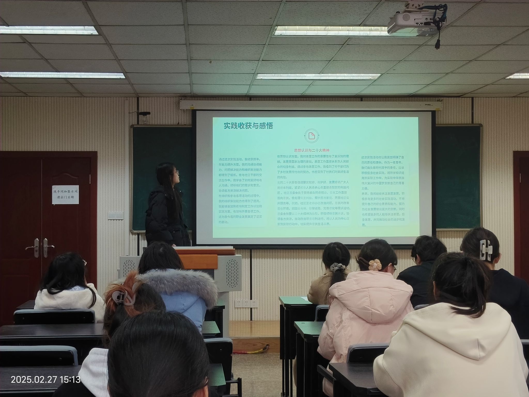 分享会现场气氛热烈融洽,同学们按照顺序依次登台,借助 PPT 展示,生动地分享了各自精彩纷呈的寒假见闻。一、四支部的同学们不仅在校园内勤奋钻研、探索知识,在寒假校外生活中同样积极进取,通过参与社会实践、关注时事热点新闻等方式,不断锻炼和充实自己。