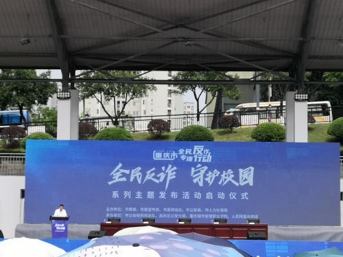 等校企代表授旗,建立“全民反诈宣传队”,推动重庆防骗防诈进程。至此,启动仪式结束。