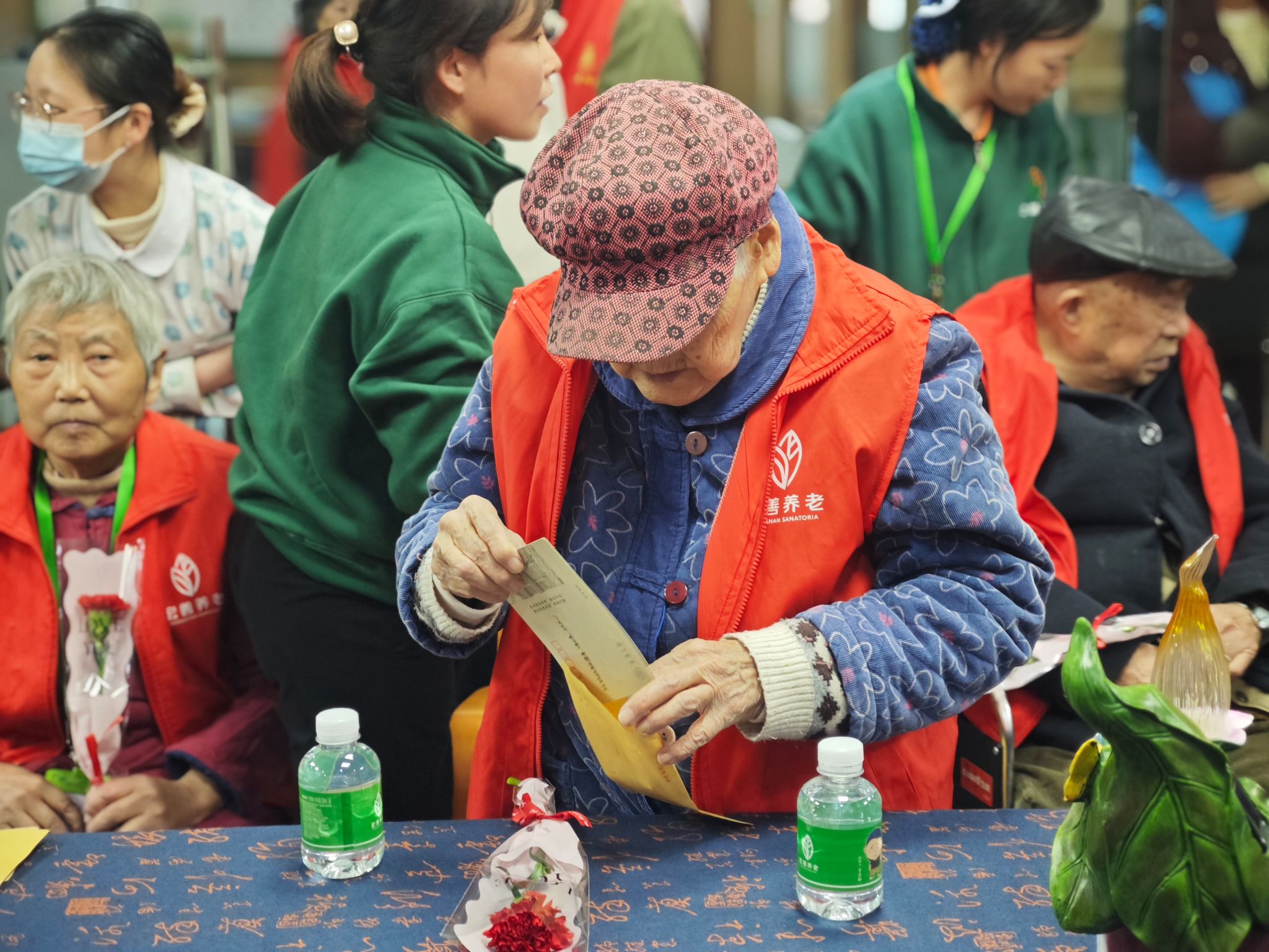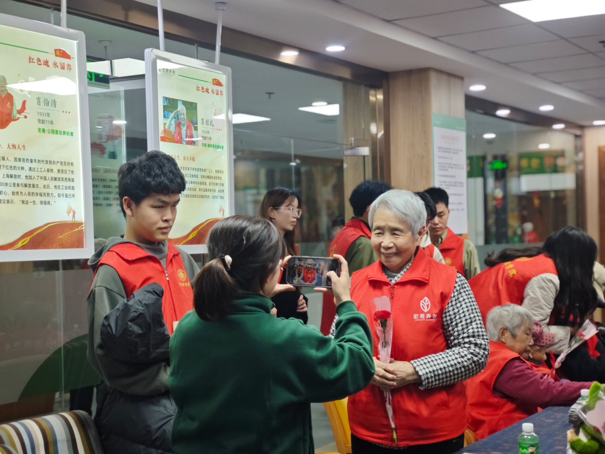 双方将自己的书信寄于对方,志愿者们为所有老人献上鲜花,中国共产党人的信念在此传承,红岩薪火绵延不断。