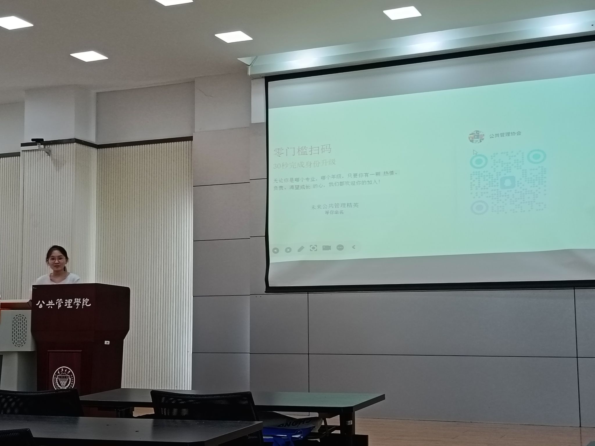 活动伊始,社长杨佳仙向同学们介绍了公共管理协会的发展历程和宗旨,回顾了以往举办的“冬日燃情,健康同行”、“诺奖经济学讲座”、“传承雷锋精神、践行责任担当”等品牌活动,充分展现了协会“从同学中来,为同学服务”的理念。