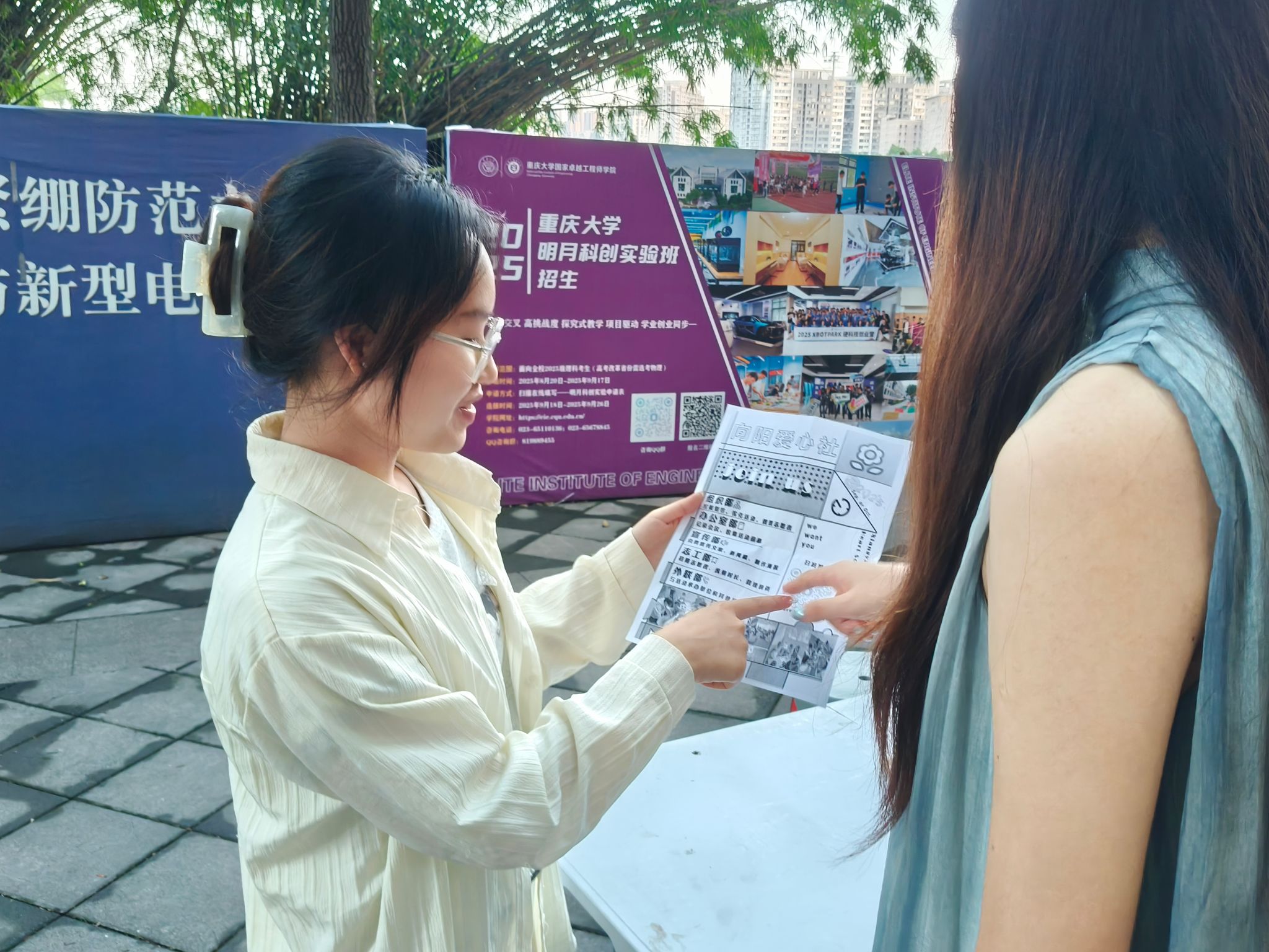 学生向阳爱心社所主办的纳新活动于虎溪校区一食堂南广场和A区小竹林顺利开展并吸引众多学子参与。