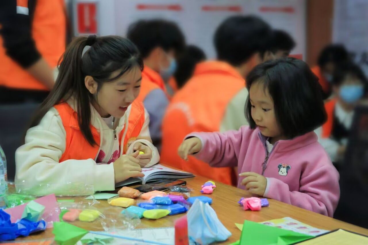 在“文明其精神”的同时,志愿者们仍不忘带领着孩子们“野蛮其体魄”。志愿者组织孩子在室内进行体育小游戏,并贴心的将桌子、凳子等带有棱角的物品包裹起来,以免有儿童不慎受伤。在玩累之后,他们还组织孩子们进行了狼人杀、谁是卧底等精彩的团队游戏。一时间,孩子们的欢声笑语不绝于耳,活动室里弥漫着欢快的空气。