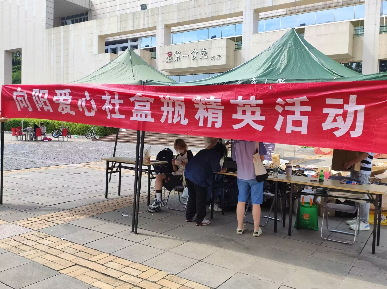 向阳爱心社组织同学们在虎溪校区开展了“盒瓶精英”活动。本次活动旨在促进同学们做好垃圾回收,共同打造美好的宿舍环境、校园环境并且提升同学们环保创新的意识。