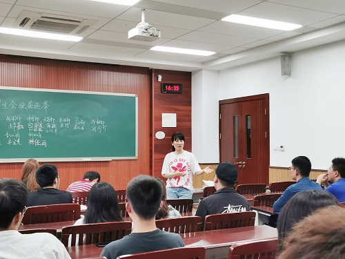 会议接近尾声,徐柳老师对新一届的学生干部寄予了期望。她表示,学生干部的这份荣誉应该是“锦上添花”,同学们不仅要把活动办好,更要积累核心竞争力,把学习成绩提上去。同时,徐柳老师也提出了新的要求,她强调:在之前工作的基础上要勇于创新、大胆尝试;作为学生会成员要以身作则,提高自身素质,做到能做会管。