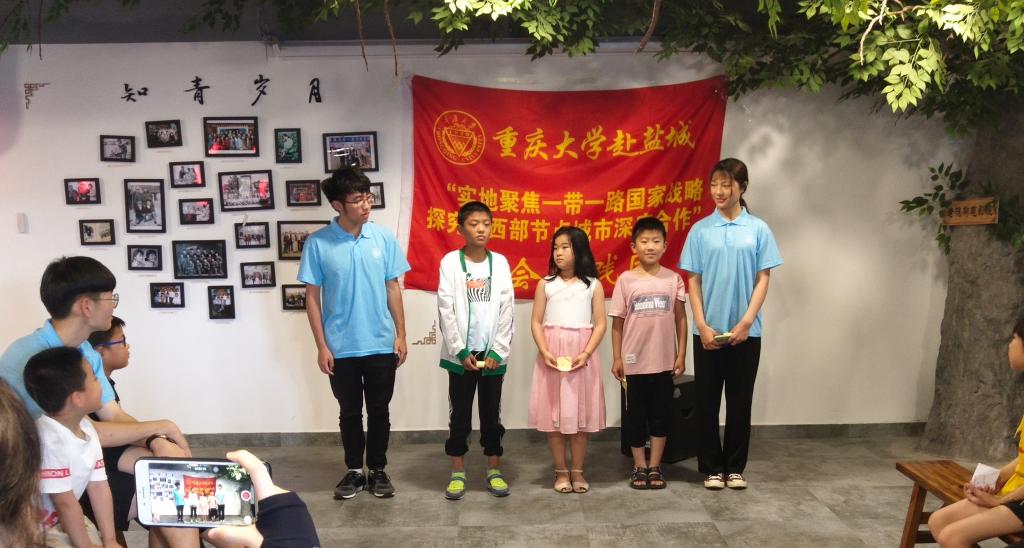 下午一点半,在小主持人的主持下,联欢会正式开始。主持人分别是来自新坍小学三年级、四年级、五年级的李茗辰、严楷耀和刘积程,还有学院实践团成员李洁媚。经过练习,小主持人们已不再羞涩,自信地念出开场和串词。
