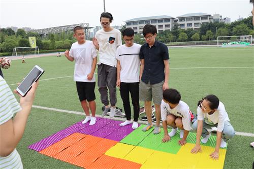 随后,素拓活动正式开始。你摆我猜、说一不二、花式越野、正话反说、遮眼绕瓶踢足球、踩气球、拔河七个项目有序进行。本次素拓注重竞技与娱乐的结合,同学们都玩的不亦乐乎,操场上洋溢着一片激情与喜悦的气氛。有的项目,看似容易做起来难;而又的看似很难的,实际却能轻松完成。绿荫场上,同学们投入到欢乐的游戏氛围中。
