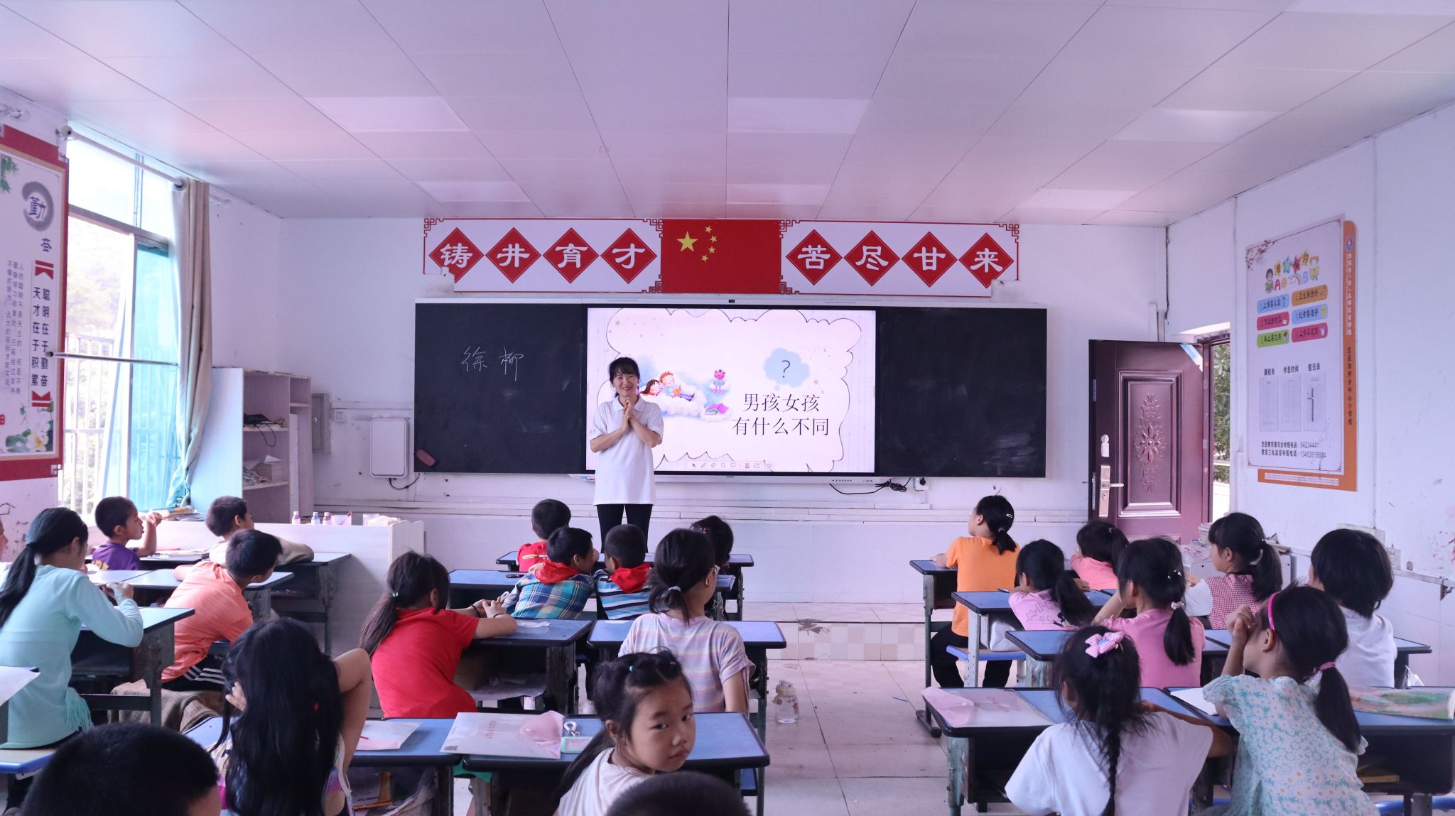 实践团带队老师徐柳依托个人心理学专业背景,为孩子们带来一堂《心若向阳 快乐成长》心理健康与性教育的特色课程。徐老师从动画片片段切入,引导孩子们充分认识自我,学会悦纳自我,建立积极的自我意识;从生命的诞生开始,给孩子们带来了别开生面的性教育第一课:性别的差异、儿童到青春期发育特征、身体的红绿灯区域,教会学生保护自己的隐私,预防性侵害事件的发生。