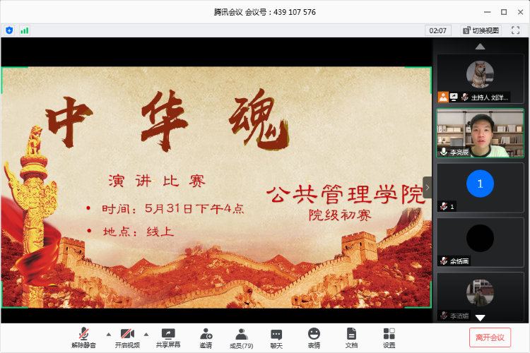 2020-06-08为深入引导青年学生讲好党的故事、中国故事、青年故事,进一步激发青年学生的爱国之情,强化爱国之志,2019年5月31日下午4点,百合小说 “中华魂”主题教育百合小说 演讲比赛初赛,通过线上腾讯会议如期举行。学办主任兼18、19级辅导员王丽娟、辅导员助理谢镇江出席观看本次演讲比赛,团委学生会主席团担任评委,18、19级同学们准时上线,为参赛选手加油打气。本次比赛共有12名同学参与。由19级经济2班刘洋主持。经过主持人的开场...