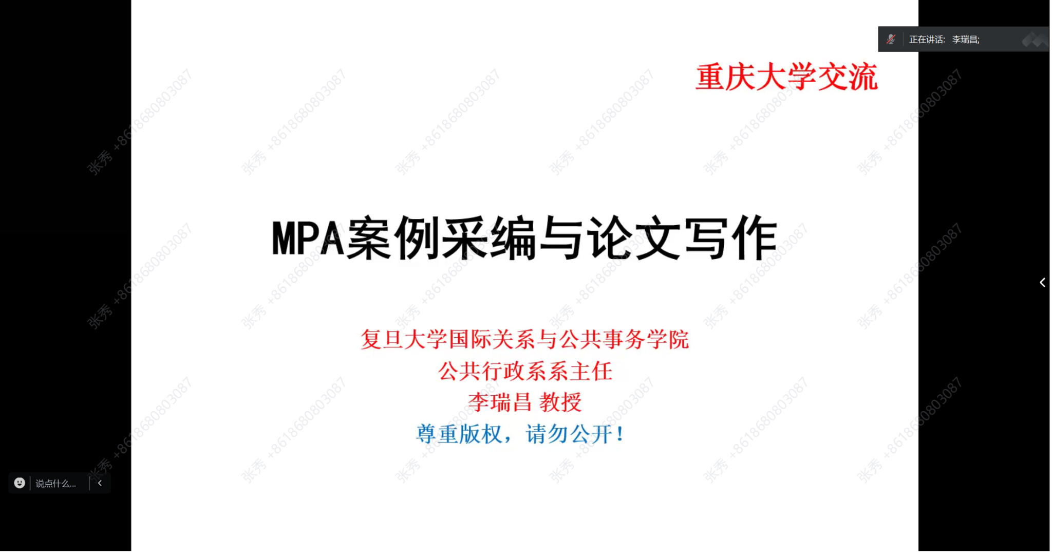 2024-02-29教授 博士生导师李瑞昌讲座主题:MPA案例采编与论文写作主讲人简介:李瑞昌,复旦大学国际关系与公共事务学院教授,博士生导师,公共行政系主任,《复旦公共行政评论》主编,国家哲学社会科学重大项目首席专家,中国应急管理学会理事,上海决策咨询委员会专家组成员等。研究方向为应急管理、公共管理、政府间关系。先后获得上海市哲学社会科学奖和上海市决策咨询奖。1月15日,百合小说 特邀复旦大学国际关系与公共事务学院李瑞...