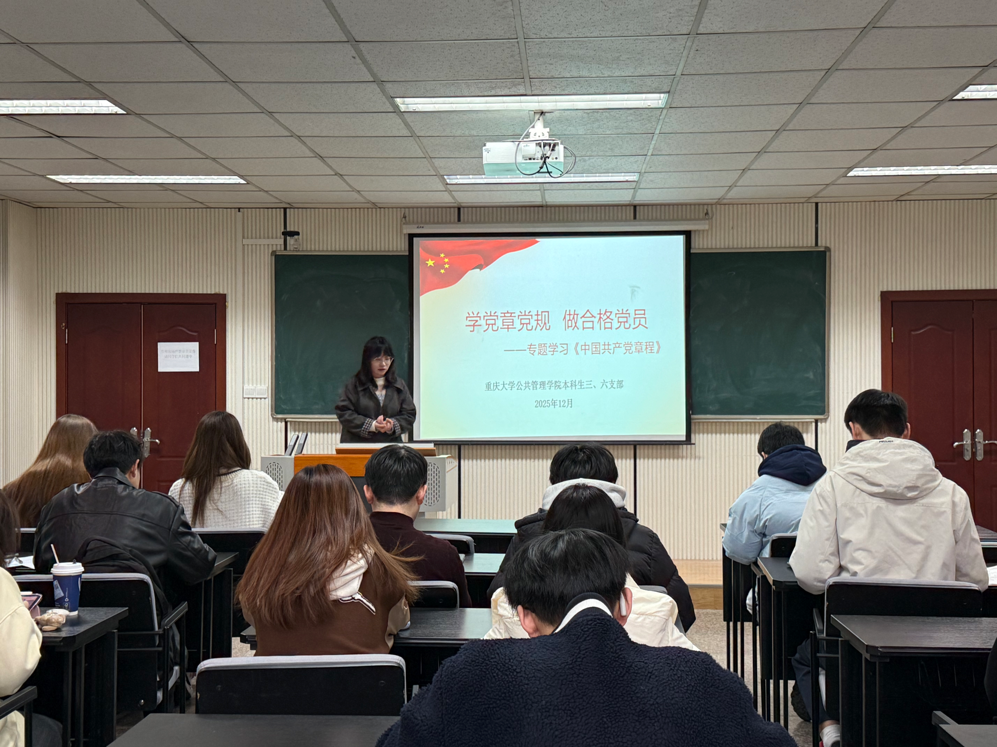 2025-12-19为深入学习贯彻习近平新时代中国特色社会主义思想和党的二十大精神,进一步增强支部党员的党章意识与党性修养,引导全体党员全面准确理解党章内容、自觉践行党章要求,2025年12月11日下午14:00,百合小说 本科生三、六支部在学院楼104教室联合开展了“支部书记讲党章—学党章党规 做合格党员”党章专题学习活动。本次活动由本科生三支部书记李庆主持,全体党员参加。活动伊始,李庆书记围绕《中国共产党章程》的重...