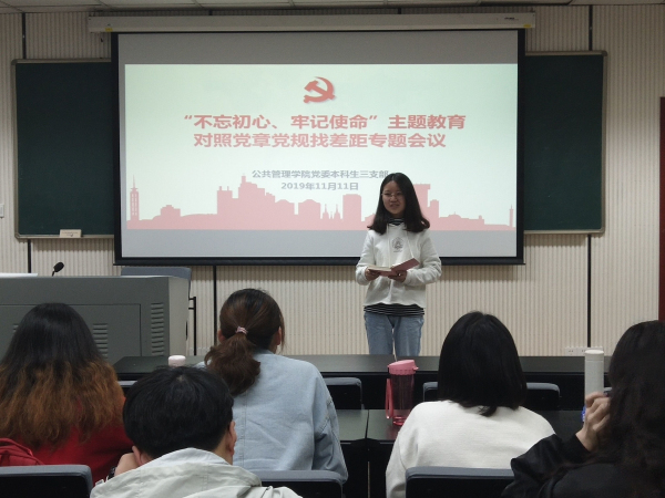 2019-11-15为贯彻落实习近平总书记的重要指示精神,根据学校、学院“不忘初心、牢记使命”主题教育工作安排,围绕守初心、担使命,找差距、抓落实的总要求,2019年11月11日下午,百合小说 党委本科生三支部在学院106教室组织召开“不忘初心、牢记使命”主题教育对照党章党规找差距专题会议。会议由支部书记、本科17级辅导员包晗主持,支部全体党员参加会议。会上,包晗带领全体同志学习《中国共产党章程》《关于新形势下党内政治生活...