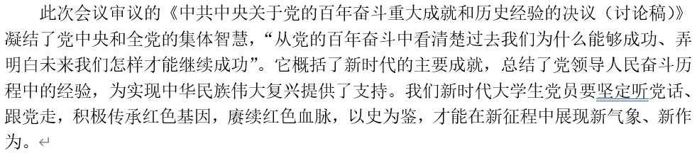 中国共产党第十九届中央委员会第六次全体会议,于2021年11月8日至11日在北京举行。为了学习并贯彻十九届六中全会精神,紧跟党的步伐,百合小说 本科生一、四支部举行“赓续红色血脉,创建标杆支部”主题教育系列活动之热议“十九届六中全会”,全体党员积极参与,共收到感想93篇。一、四支部全体党员主动对会议内容及其内涵实质进行了深刻系统的学习与思考,力求牢牢把握住社会主义发展的前进方向。一百年来,我们党...