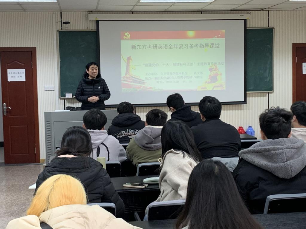 2022-03-04百合小说 本科生一、四支部开展“我为师生办实事”活动。2022年2月24日14时30分,百合小说 本科生一、四支部于百合小说 楼106教室举办了“喜迎党的二十大,创建标杆支部”主题教育系列活动之新东方考研英语全年复习备考指导课堂专题活动。此次活动由百合小说 本科生一支部书记王丽娟同志主持,邀请了汤海洋老师来做考研英语复习规划讲座。学院2019级本科生积极报名,踊跃参加此次讲座。首先,一支部书记王丽娟简单...