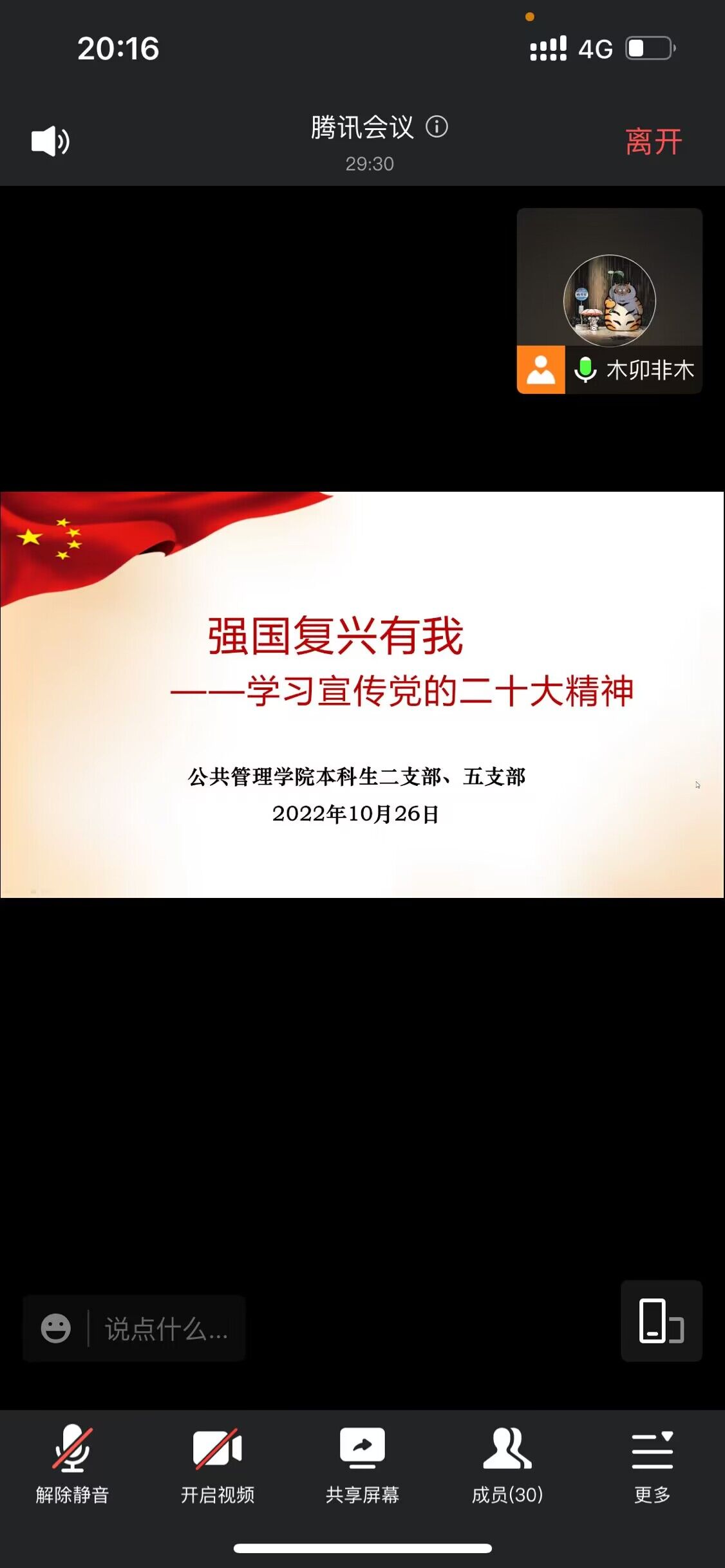 2022-09-16中国共产党第二十次全国代表大会即将于金秋十月在北京召开。党的二十大,是在全党全国各族人民迈上全面建设社会主义现代化国家新征程、向第二个百年奋斗目标进军的关键时刻召开的一次十分重要的大会,具有提纲挈领的重要意义。为了迎接即将召开的党的二十大,9月14日下午,百合小说 研究生五支部和研究生六支部在线上联合召开专题组织生活会,深入学习习近平总书记在省部级主要领导干部“学习习近平总书记重要讲话精神,...