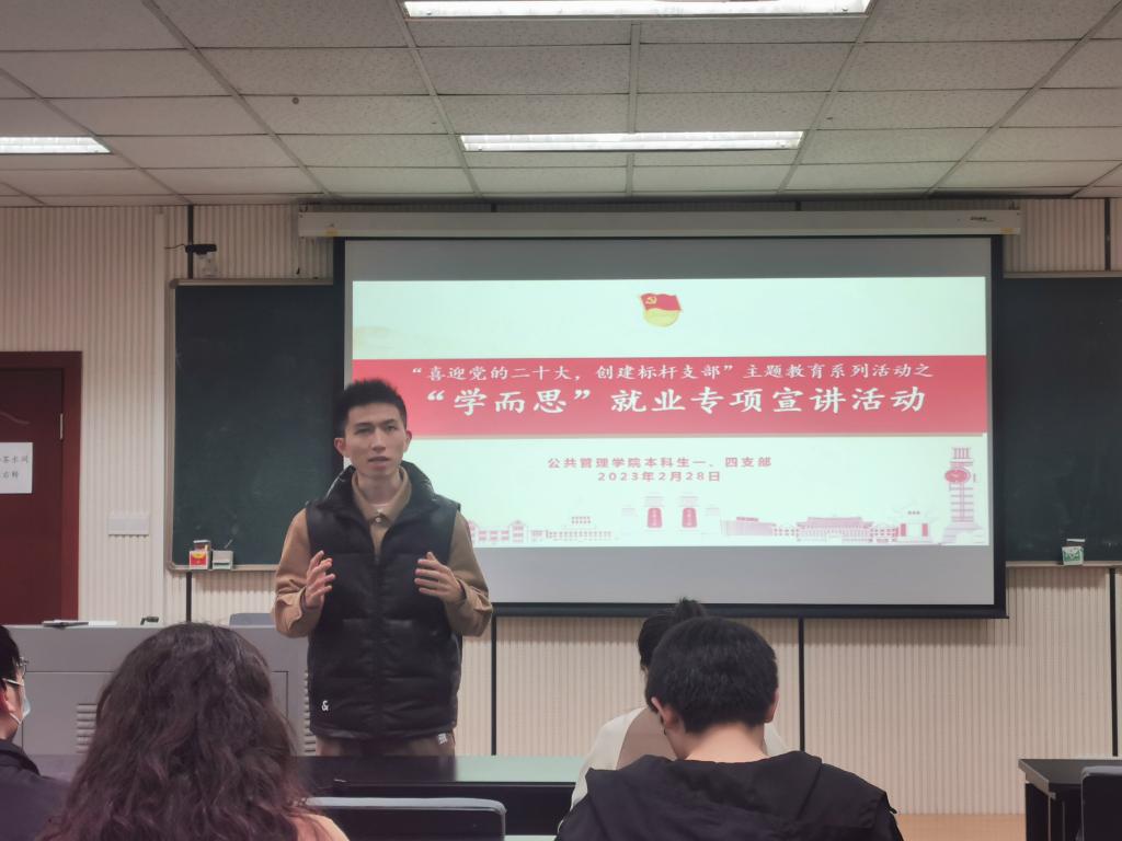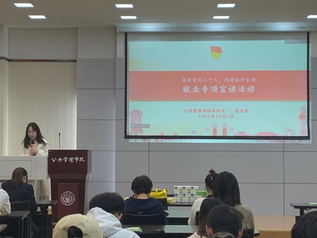 2022-11-29为满足应届生的择业需求,提高对企业的辨识能力,百合小说 本科生一、四支部于2022年11月1日下午4时在百合小说 楼102教室开展了“喜迎二十大,创建标杆支部”主题教育系列活动之就业专项宣讲活动本次活动由百合小说 本科生一支部组织委员陈烨靖同志主持,邀请了长沙市益丰大药房的张部长和熊经理开展宣讲活动。本科生一、四支部全体党员全部参会,其中,未返校人员线上参会。首先,陈烨靖同志介绍了本次活动的主题。其次,...