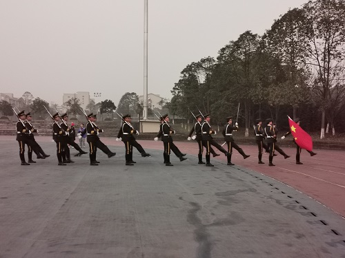 冬至来临,早晨的天还没有亮,同学们便已早早地在操场上集合,按照指定的位置排成了整齐有序的队伍,在凌冽的寒风中安静地等待着升旗仪式的开始。随着“国旗班出旗”的口令响起,升旗仪式正式开始。为首的国旗班队员手持国旗,同其他队员们一起,迈着铿锵有力的步伐,整齐划一地向国旗台正步走去。同学们全体肃立,目送队员们将五星红旗护送至国旗台。