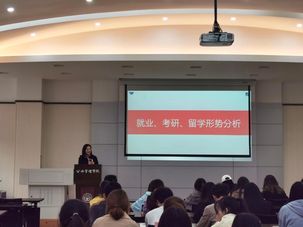 讲座伊始,王老师首先对汤老师的到来表示了热烈的欢迎。王老师表示,目前国内考研和就业都面临着前所未有的严峻形势,本着为学院学生的多谋一条出路的考量,特此安排了这场讲座。