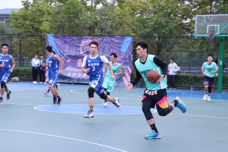 本科生男子篮球队的第一场比赛于虎溪校区梅园篮球赛正式打响,与弘深学院展开角逐。