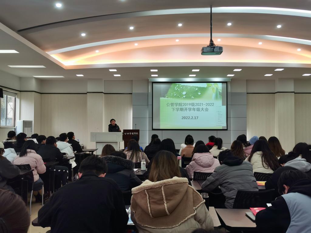 春风十里,瑞虎纳祥,挥别心爱的家人,结束短暂的寒假,重大学子顶着料峭春寒回到了亲切的校园,一个崭新的学期已然拉开序幕。为更好落实本学期的相关工作,2月17日下午五点,学办主任、19级辅导员王丽娟组织学院2019级本科全体学生,于学院楼102教室开展本学期第一次年级大会,并就各注意事项作出提醒。