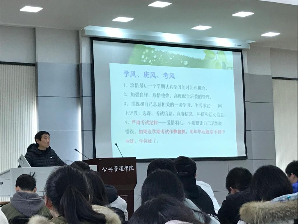 会议伊始,王老师首先祝福大家新学期新气象。短暂分别了一个寒假,看到同学们个个精神饱满、容光焕发,王老师感到由衷的欣慰。简短寒暄过后,本次年级大会便进入正题,王老师分别从学分绩点、学习风气、信息获取、人身财产安全、近期相关事宜和注意事项等方面展开讲解。