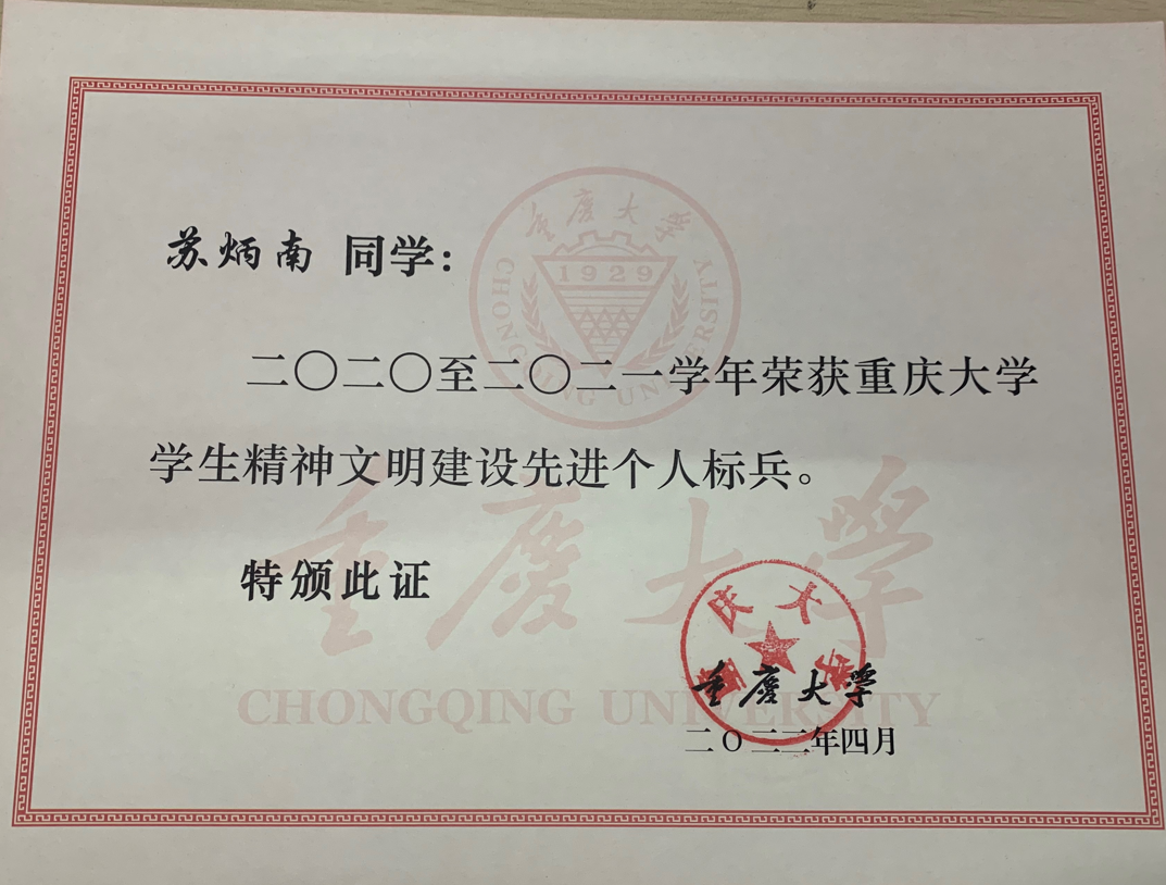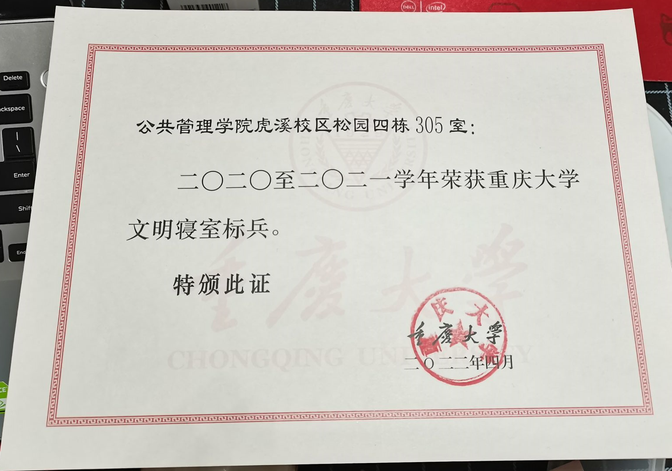 学生精神文明建设先进个人标兵;2018级虎溪校区松园四栋305室荣获2020-2021学年百合小说