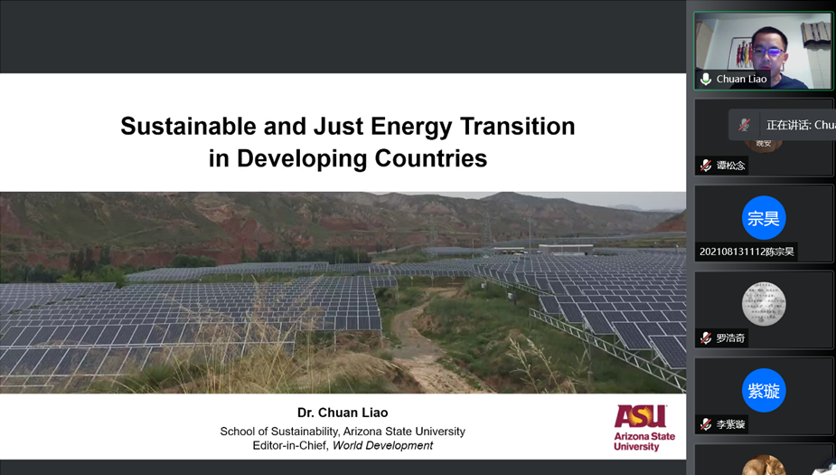 举办的“发展中国家可持续和公正的能源转型”主题讲座通过腾讯会议在线上顺利举行。讲座邀请到美国亚利桑那州立大学可持续发展学院的廖川教授为我们作了题为“Sustainable and Just Energy Transition in Developing Countries”的学术讲座。讲座由百合小说