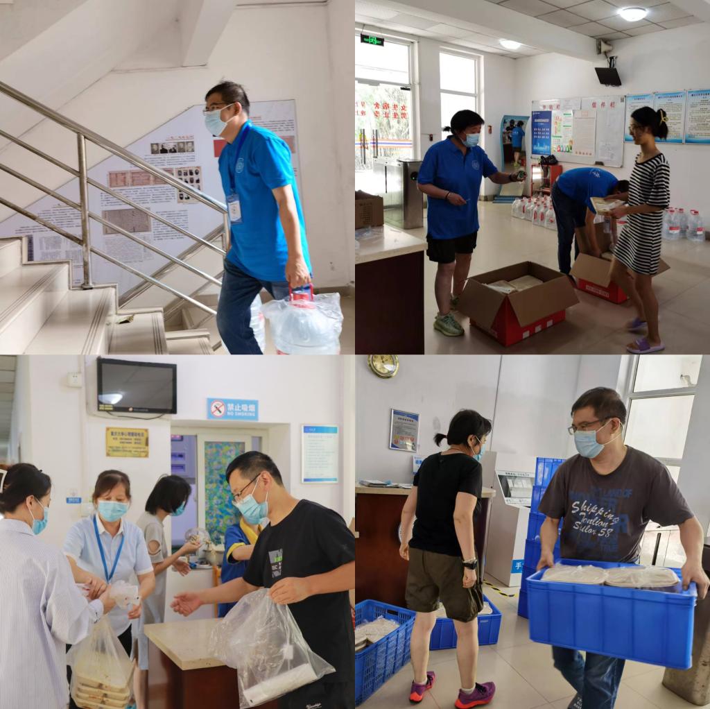 学院公共人力与社会保障系支愧云教授、培训中心主任刘敏副教授、MPA教育办公室副主任符晟老师、土地资源与城市管理系马历老师等先后加入志愿者队伍,为疫情防控贡献力量。摸清人员底数是做好防控工作的前提,马历老师穿上防护服走进学生公寓,挨个宿舍确认在校学生人数和信息,为后续工作打牢基础。支愧云老师、刘敏老师多次参与核酸检测,每次长时间的工作都让她们穿戴厚实橡胶手套的双手发汗泡白,但仍坚持工作。符晟老师则承担了为A区五公寓学生送餐到宿舍的工作,在超过40℃的室外一趟趟往返上下楼,防护服下的衣服全身湿透,汗水迷了眼睛。但老师们并没觉得辛苦,反而干劲十足:“为了守护学生、守护学校,尽早战胜疫情,都是我们应该做的!”“还有任何需要,我随时待命!”