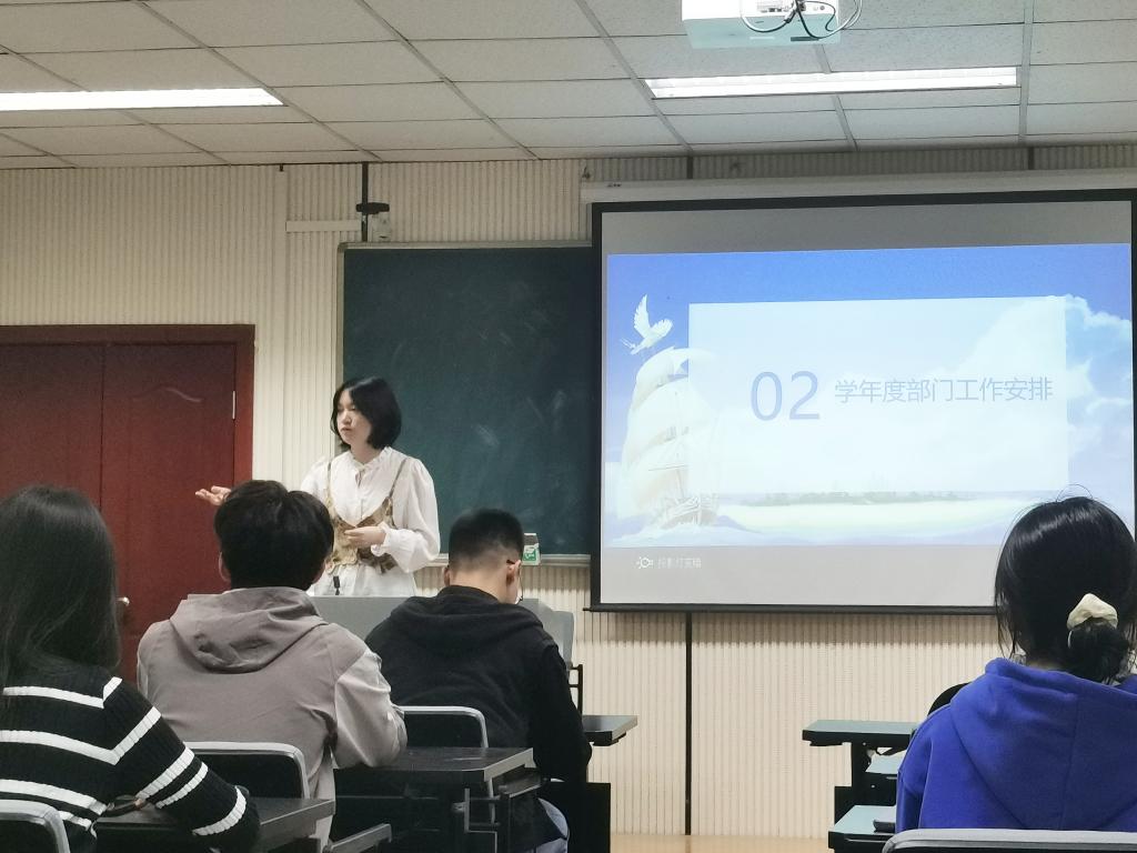 研究生团委书记王琼详细介绍了各个部门的年度工作安排,讲解了工作原则。