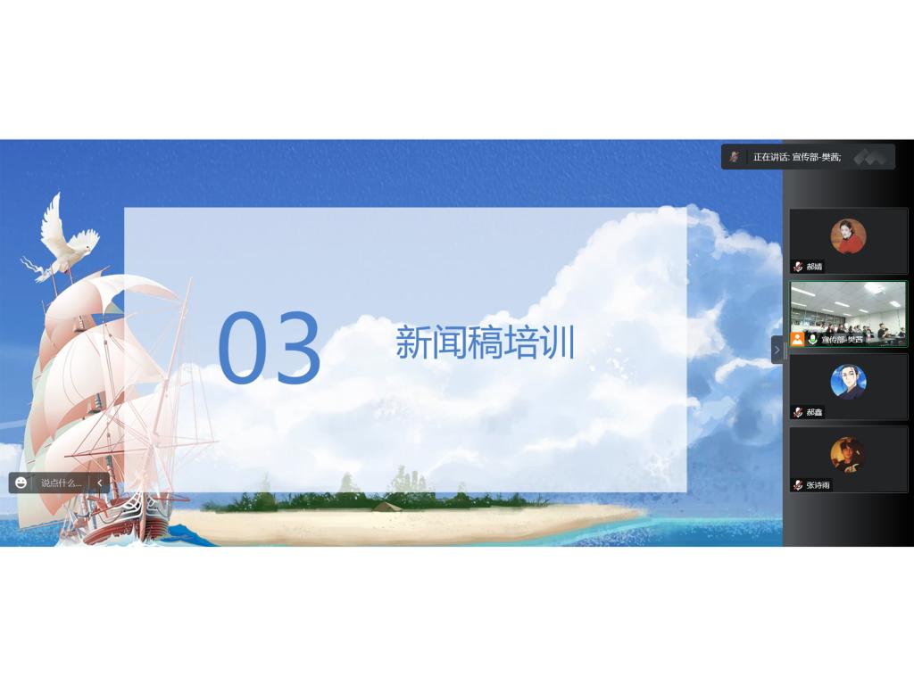 随后,副书记谢明娟讲述了新闻稿的写作需求,她希望所有成员都能对部门活动的宣传新闻稿负责。