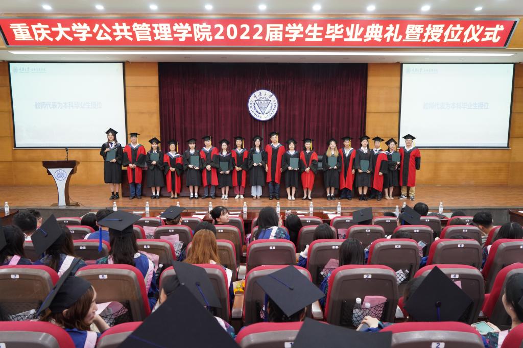 对毕业学子的殷殷期望。入场前,全体毕业生和教师代表等陆续走上红毯,合影留念。与此同时,场内循环播放毕业纪念视频,一张张照片、一段段影像展现了2022届公管毕业生负笈求是、追梦奋起的点滴和自信昂扬的青春面貌。随后,雄壮激昂的国歌声起,全体起立,齐唱国歌,典礼正式开始。