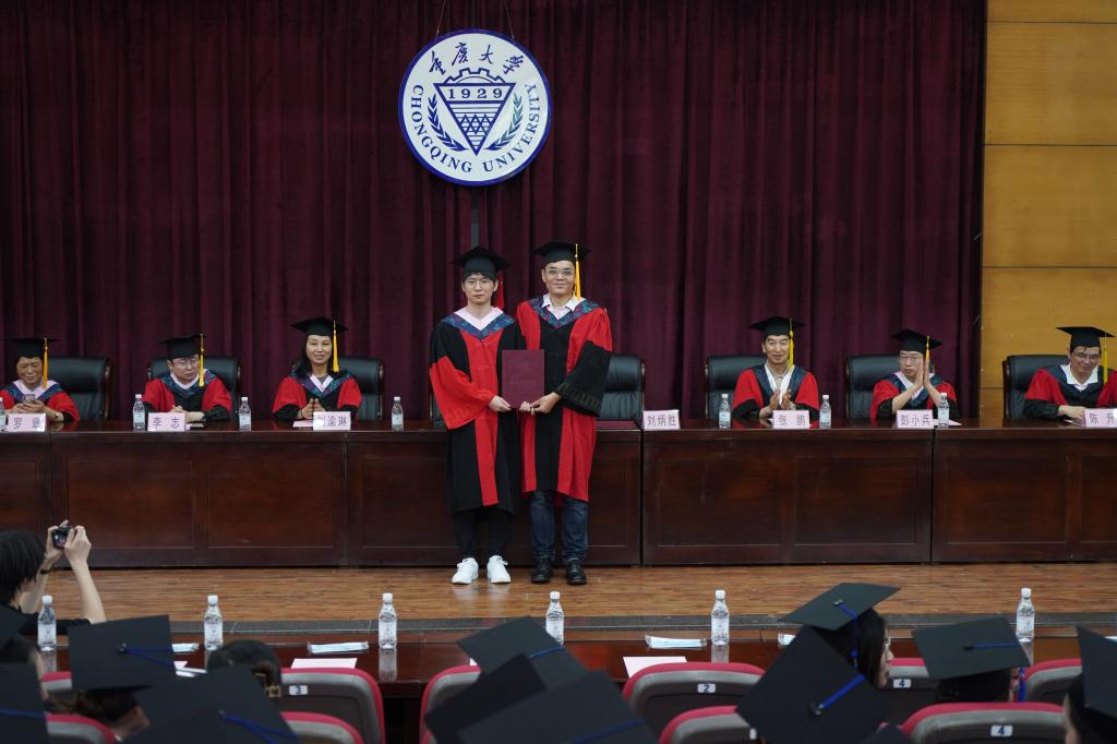 在授予学位环节,全体毕业生依次上台接受授位,台上就座的学院领导、导师代表为同学们拨穗正冠,毕业生鞠躬致谢,合影留念,现场气氛热烈。