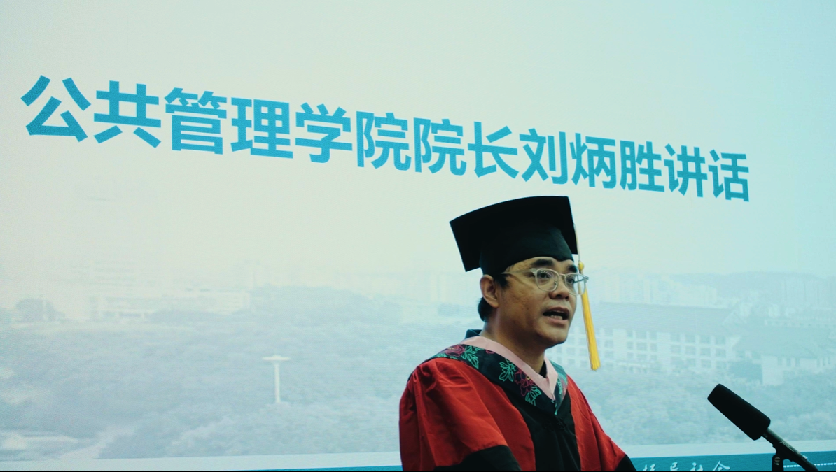 院长刘炳胜发表讲话,他代表学院向全体2023届毕业生表示热烈祝贺和深情祝福。他表示,作为党的二十大后第一批毕业的大学生,毕业生们从今天起,将投身全面推进中华民族伟大复兴的新征程,为实现中国式现代化的宏伟蓝图贡献青春力量。临别之际,他对毕业生同学们提出几点期望,希望同学们无论身处何方,都要做红色的公管人、做厚重的公管人、做朝气的公管人、做卓越的公管人。最后,他再次为毕业生们送上祝福,祝同学们光明灿烂、未来可期,欢迎同学们常回家看看。
