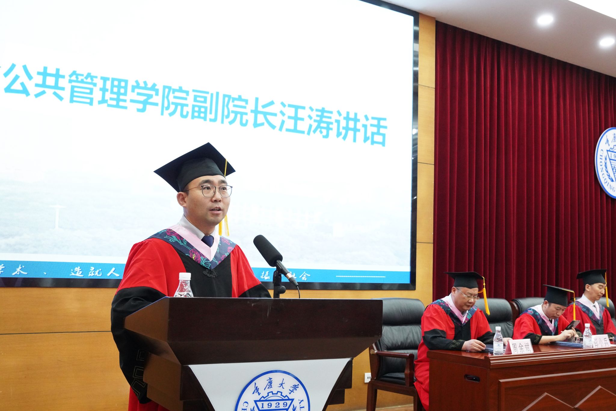 汪涛指出,同学们用实际行动弘扬着重大人“耐劳苦、尚俭朴、勤学业、爱国家”的光荣传统,传承着公管人的理想情怀,学院由衷地感到欣慰和骄傲。他对毕业生们提出以下期许:一是要做红色的公管人;二是要做厚重的公管人;三是要做朝气的公管人;四是要做卓越的公管人。他衷心地祝愿各位同学,勇敢地遨游世界,勇敢地闯荡人生,勇敢地创造未来,在实现强国建设、民族复兴伟业的征程中展现青春作为、彰显青春风采、贡献青春力量,努力成为影响世界、引领世界的新时代公管人。