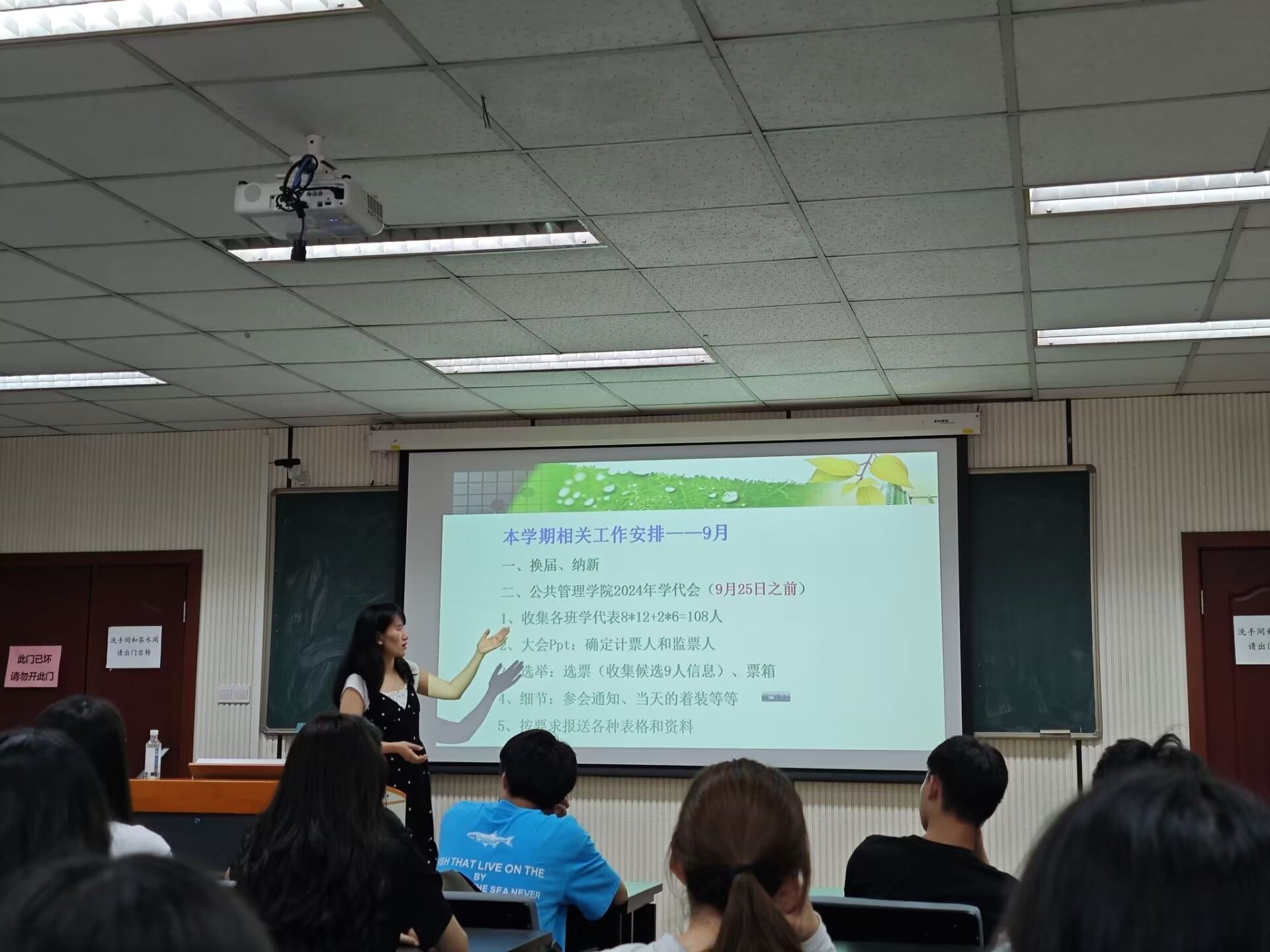 紧接着,徐柳老师以月计量对本学期的工作进行了详细的规划,并对各部门的职能要求进行了进一步的明确,尤其是对即将召开的学院2024年本科学生代表大会做出了安排和部署。大会开展过程中,参会同学始终全神贯注听取徐柳老师的指导,保持高涨的工作热情,展现出新学期对学生工作开展的态度与责任心。