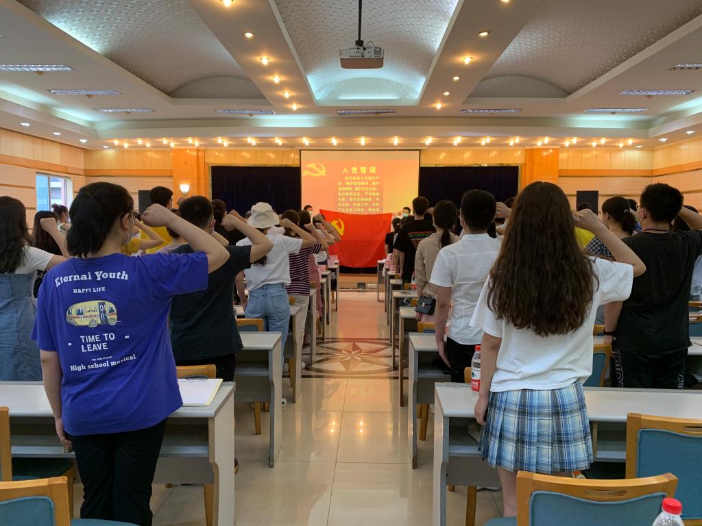 接下来是一场特别的入党宣誓仪式。在庄严的党旗下,预备党员进行了入党宣誓,老党员重温了入党誓词。党委副书记、纪委书记袁晓浩领誓。学院党委组织不能到场的师生党员通过腾讯视频会议同时重温入党誓词。大家线上线下同声相应、同频共振,洪亮有力的宣誓声催生了一股精神,体现了一种气节,激发了一种动力!