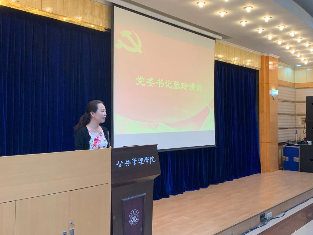 党委书记张玲代表学院党委,向全体党员师生致以节日的问候!向受到表彰的支部和个人表示热烈的祝贺!她回顾了近年来学院发展走过的不平凡的阶段。并充分肯定了这些工作的推进和成绩的取得,是学校党委坚强领导和学院全体党员师生共同努力的结果。面对新时代新形势新挑战,她提出了几点希望。一是希望大家志存高远,自觉争做共产主义远大理想和中国特色社会主义共同理想的坚定信仰者。二是希望大家勇敢拼搏,自觉争做转型发展、科学发展的推动者。三是希望大家心系群众,自觉争做为民服务、为民谋福的践行者。四是希望大家从严从实,自觉争做心有敬畏、令行禁止的维护者。最后,她号召大家以习近平新时代中国特色社会主义思想为指导,全面贯彻党的教育方针,坚守为党育人、为国育才的初心和使命,增强学校、学院发展战略定力,以创新的思路和举措推动人才培养能力和水平的提高,为国家和区域经济发展、办人民满意教育做出新的更大贡献,为助力学校早日建成中国特色、世界一流大学而不懈奋斗!