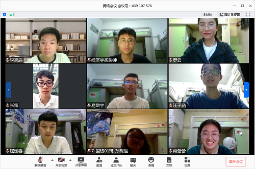 演讲比赛初赛,通过线上腾讯会议如期举行。学办主任兼18、19级辅导员王丽娟、辅导员助理谢镇江出席观看本次演讲比赛,团委学生会主席团担任评委,18、19级同学们准时上线,为参赛选手加油打气。本次比赛共有12名同学参与。由19级经济2班刘洋主持。
