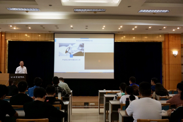 最后发言的是学院第九期高管班班长、现任重庆思源建筑技术公司总经理的周兵校友。他现场播放了其思源公司的项目宣传片,周兵校友分享了高级管理者在建筑技术领域工作的难处与收获,并鼓励同学们在学好本专业知识的同时,勇于跨界创业、挑战自我。