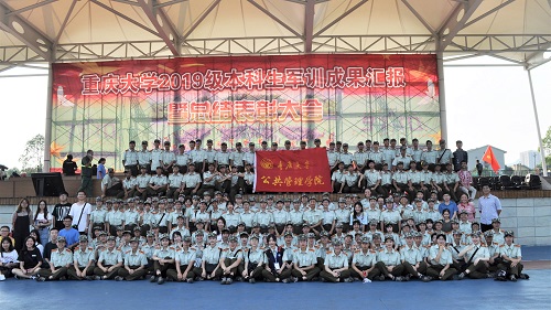2019级本科生军训成果汇报暨总结表彰大会于虎溪校区风雨操场顺利举办。学院副院长李志、学办主任兼18、19级辅导员王丽娟、辅导员助理谢镇江出席了本次军训成果汇报暨总结表彰大会,共同见证了19级同学们成长过程中这具有历史性的一刻。