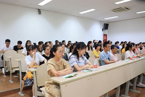 曾经的故事,也对自己的教学生涯作了简单的介绍,用诙谐的语言很快地与新生们拉近进了距离。接着,王老师向新同学们介绍了辅导员助理谢镇江学长以及19级各班班主任,并期待在之后的四年里,能与19级的同学们共创公管美好的未来。最后,王老师就“入学须知”“军训要务”等方面对同学们进行了详细的指导,不漏下每一个细节。同学们聚精会神,仔细聆听,在王老师讲话结束后,报以了热烈的掌声。