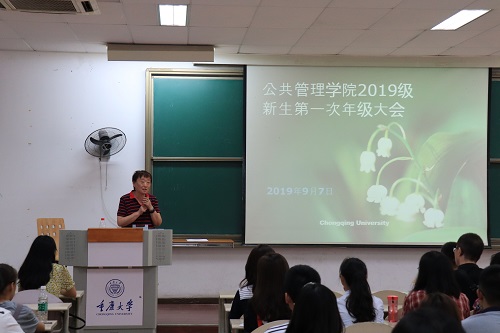 于虎溪校区综合楼DZ121举办了2019级本科生开学典礼暨首次年级大会。本次开学典礼暨年级大会由学办主任兼18、19级辅导员王丽娟主持,学院党委副书记兼纪委书记袁晓浩发表讲话,辅导员助理谢镇江及19级全体同学参与。