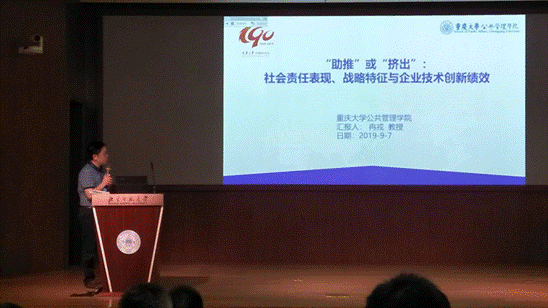 下午可持续发展与企业社会责任学术研讨会(2019)举行了三个分论坛的学术研讨。冉戎教授于第一分论坛上半场做了题为《“助推”或“挤出”:社会责任表现、战略特征与企业技术创新绩效》的分享,研究了企业社会责任战略特征差异对技术创新的影响。与会专家学者对该论文报告的研究视角和价值予以了充分的肯定,并提出了宝贵的建议。在研讨会期间,聂军博士全程聆听了与会专家、学者的学术报告,参与了各分论坛的互动讨论,开拓了视野,增长了见识,提升了学术研究能力,获益良多。