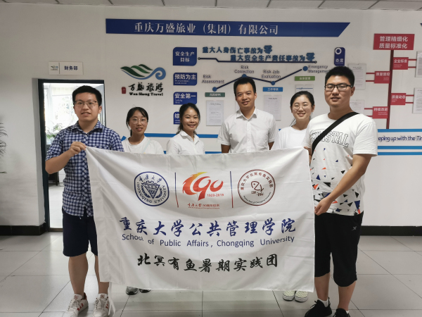 的本科生柳鲲鹏、高艺宁、范玉峰、杨宇寒以及环境与生态学院的本科生杨曦等五位同学组成“北冥有鱼暑期实践团”,于2019年8月12日至16日赴万盛经开区开展农村人居环境治理调研。调研期间,实践团成员走访了万盛经开区农林局、环保局、城市管理局、旅游发展委员会、青年镇人民政府、关坝镇人民政府、黑山镇人民政府、黑山谷旅游投资有限公司及黑山谷景区、奥陶纪旅业有限公司等十多个单位、场所,并参观考察了关坝镇凉风村“全国乡村旅游重点村”的发展经验,从中感悟绿水青山,探究当地如何通过旅游产业的嵌入来改善生态环境,实现“特色保护类”乡村振兴。