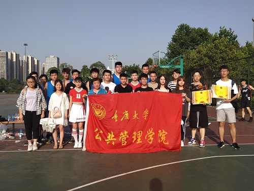 对战法学院以37:40的比分惜败,获得亚军。比赛结束后,学院篮球赛队员及啦啦操全体队员进行了合影留念。