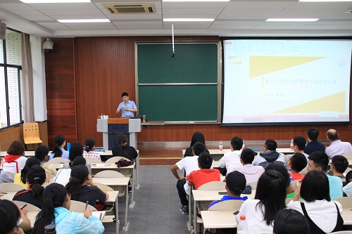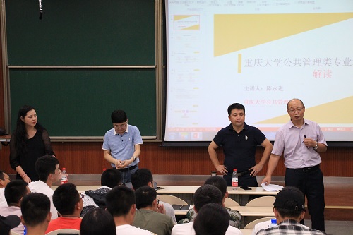 会议伊始,陈永进主任从历史沿革、专业概述、教学资源、创新突破的三大模块和培养目标对公共管理学科大类专业进行了解读。目前,公共管理系开设了行政管理和城市管理两个专业,有三个专业方向:政府与社会管理、组织与人力资源管理、智慧城市管理。2011年,行政管理专业被评为重庆市重点学科,2016年被评为重庆市“三特”专业。就在今年,学院获得公共管理一级博士学位授权点。