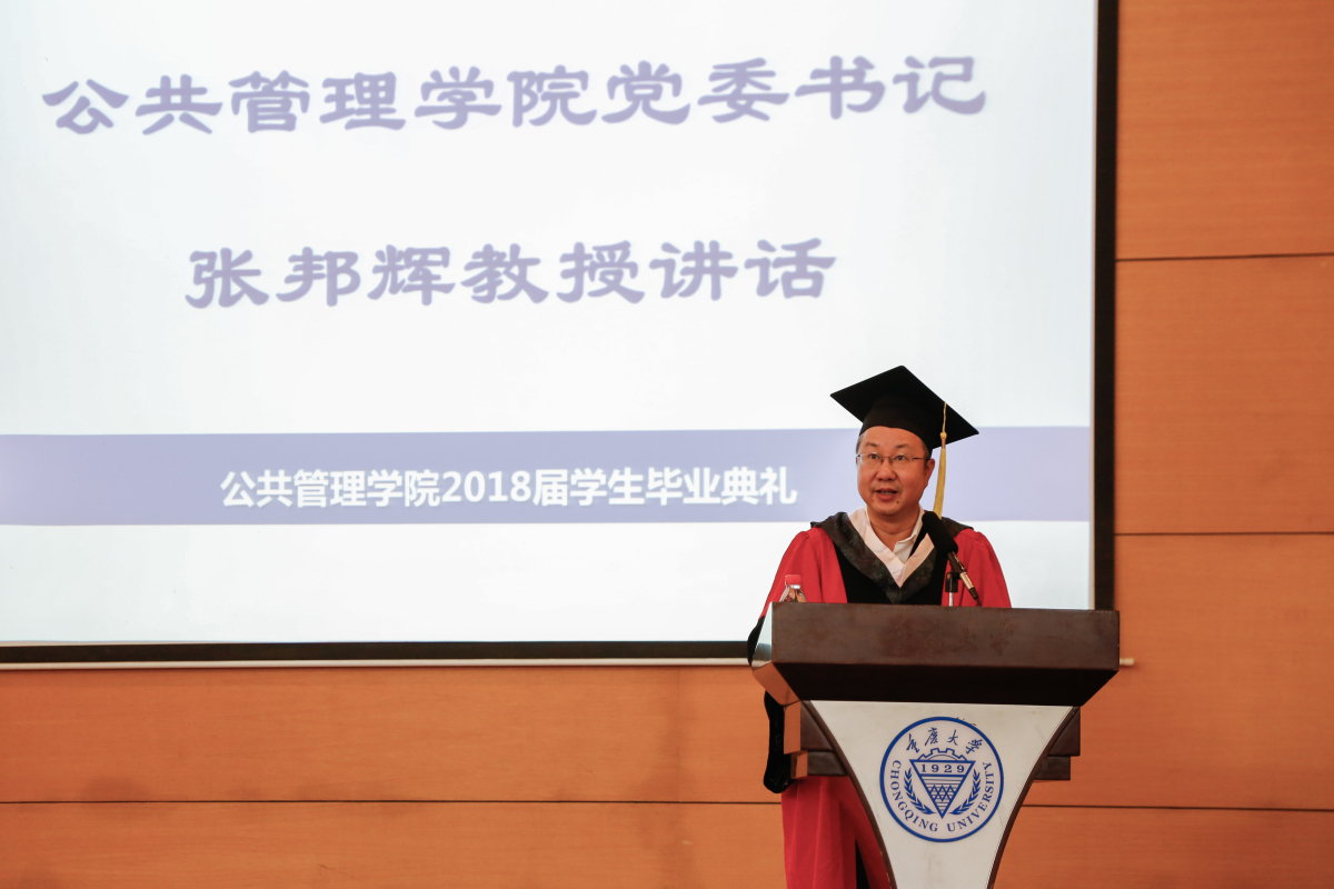 党委书记、MPA教育中心主任张邦辉教授发表讲话。他说到,回首过去的这几年,学院和同学们共同成长,同学们拥有了精彩纷呈、可圈可点的大学经历,学院也取得了显著的发展和进步,公管师生勠力同心,深刻诠释了“尚道至公,管泽天下”的宗旨与理想。他在讲话中叮咛全体毕业生,在未来的征途中,要能够学习生活、认识生活,始终持有一颗追求真理的心,更坦然、更从容、更笃定;要能够探索生活、体验生活,在有趣的探索中体验,在丰富的体验中生活;还要能够创造生活、改变生活,让我们的“小生活”更美好健康、更富有诗意、更具品质和品位。毕业纸短,公管情长。母校,随时欢迎大家回来!