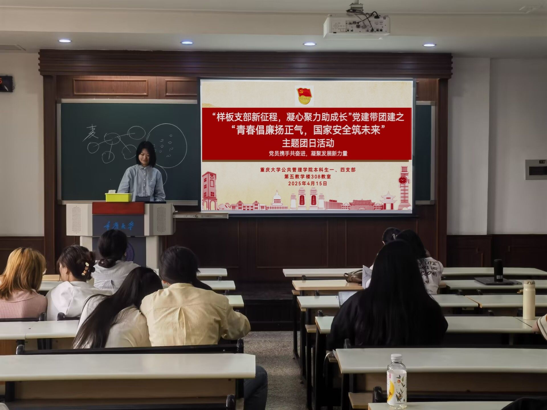 本科生一、四支部联合2022级本科生6个团支部在第五教学楼308教室开展了“样板支部新征程,凝心聚力助成长”党建带团建之“青春倡廉扬正气,国家安全筑未来”主题团日活动。本次活动旨在深入学习贯彻习近平总书记关于廉洁文化建设的重要论述,厚植全民国家安全意识,积极投身国家安全教育实践。活动由经济学01班和经济学02班团支部具体承办,来自经济学、国际经济与贸易、城市管理、行政管理、人力资源6个专业的团员都积极参与,展现了支部成员的良好精神风貌。